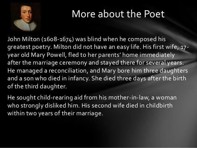 Poetry Critical Appreciation Milton On His Blindness 1st Grade